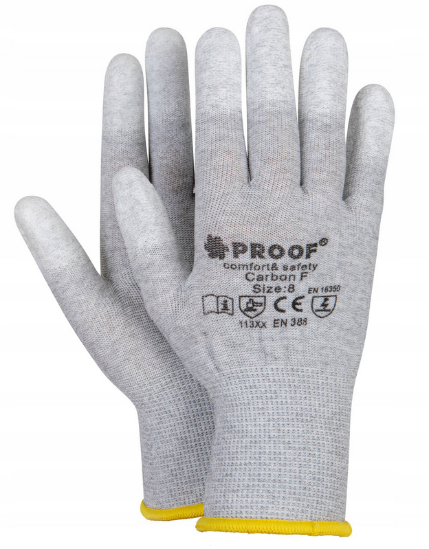 Rękawice antystatyczne Proof Carbon ESD, to idealny wybór do prac precyzyjnych które wymagają chwytności i manipulacji drobnymi częściami. To rękawice, najlepsze w swojej kategorii jeśli chodzi o precyzję w końcówkach palców, chroniąc je przy pracach manipulacyjnych. Dobra chwyność i antypoślizgowość w suchym środowisku.