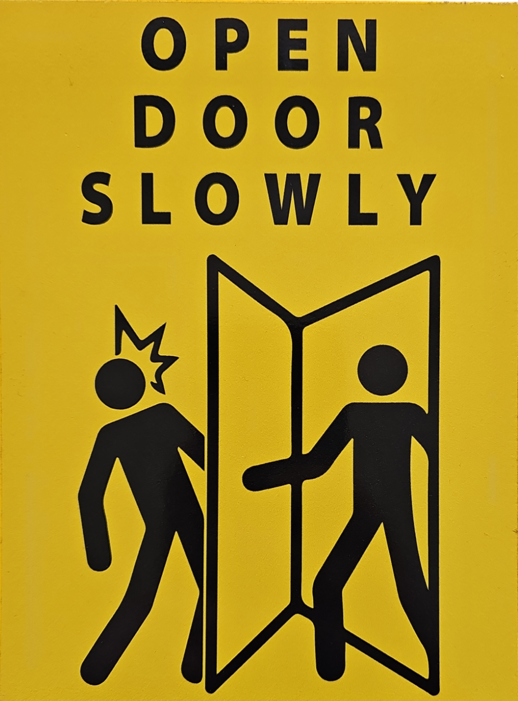 Znak ostrzegawczy Open door slowly