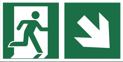 Znak wyjście ewakuacyjne strzałka w prawo dół